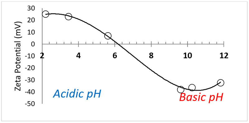 許多商業化的納米材料會在其表面電荷或 Zeta 電位顯著降低的條件下發生聚集。pH 值是控制表面電荷的一個明確變量,它會導致各種表面基團的電離度(α)發生變化。
